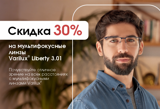 Акция! СКИДКА 30% на мультифокусные линзы Liberty от Essilor (Франция)